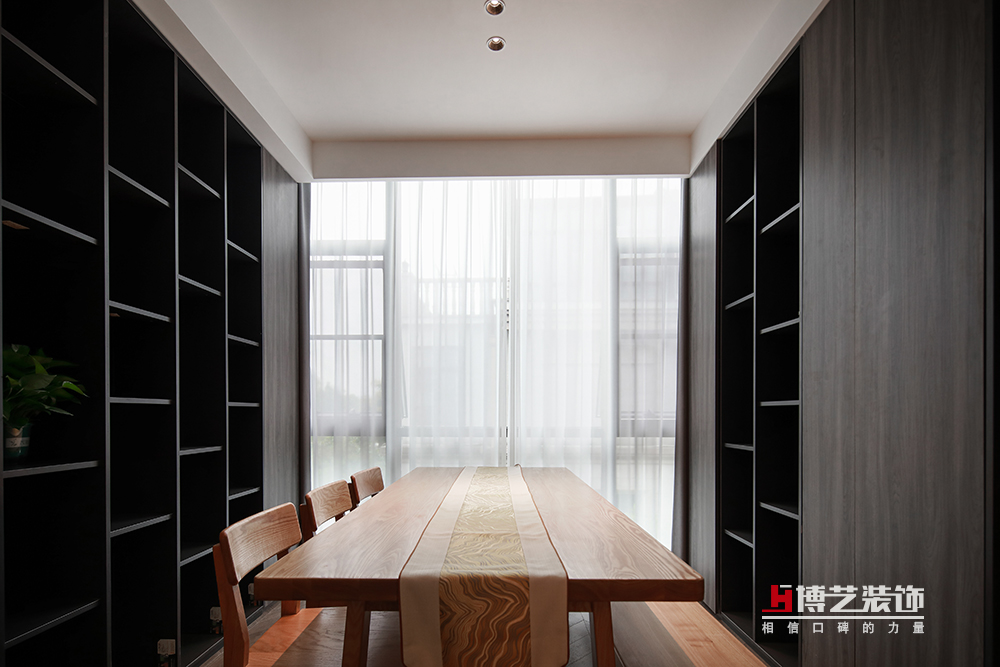 除了各自的臥室洗漱空間,二樓的書房是兄弟倆共用。我們選擇了較大臺面的空間,可以讓他們共同學(xué)習(xí)工作,就像一條無形的紐帶,把家人之間的關(guān)系凝集地更加緊密。