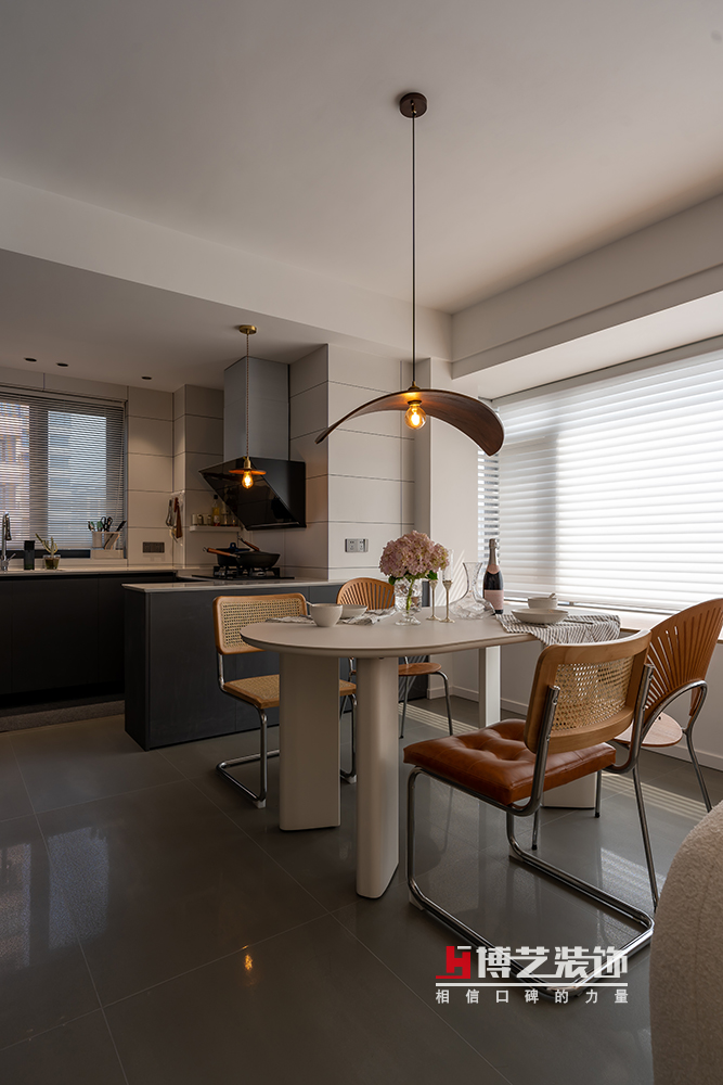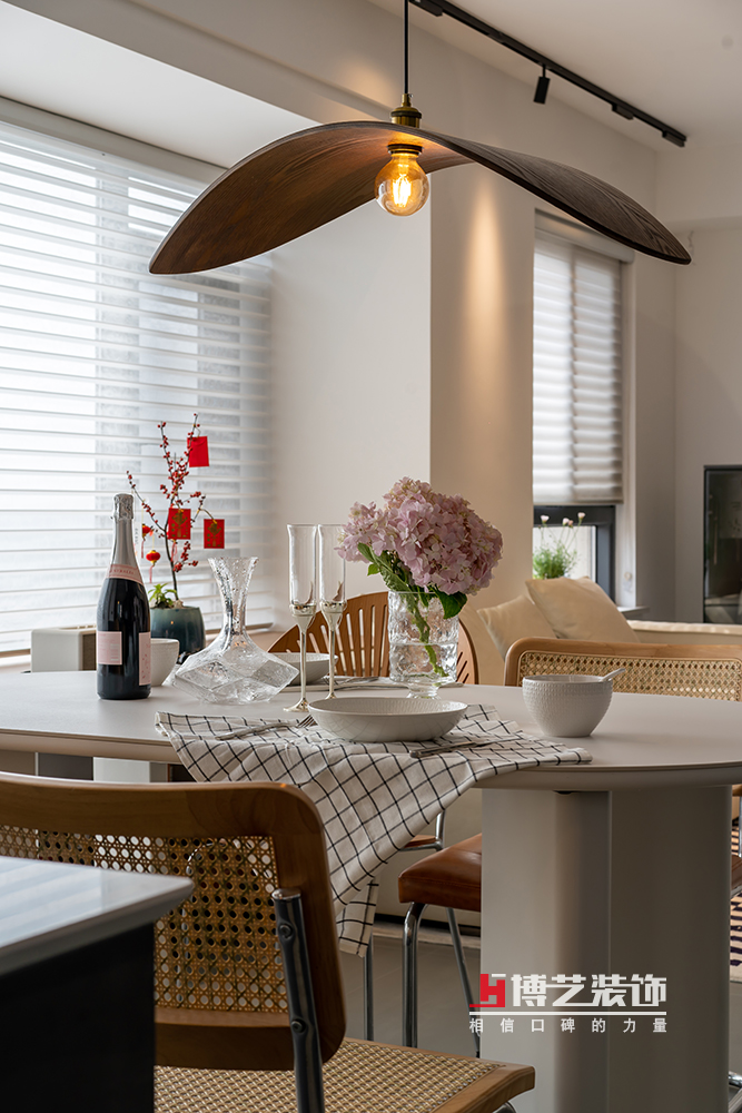 圓弧形的餐桌總給人感覺安全感滿滿,搭配不同造型的餐椅,別有一番風(fēng)趣。鮮花,紅酒,西餐,家里的儀式感也一樣不少。