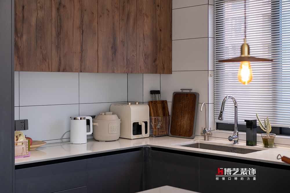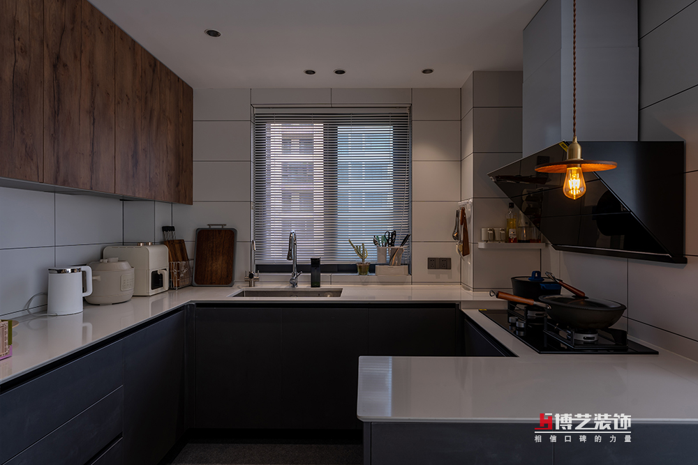 打破了空間之間的阻隔,開放式的廚房布局讓空間更加敞亮,并與餐廳融為一體。理,洗,切,燒,擺,一氣呵成。