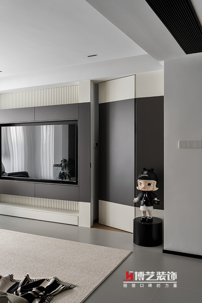 在客廳通往客臥間,還巧妙地隱藏著一扇隱形門。這扇門與墻面完美融合,若不仔細(xì)觀察,很難發(fā)現(xiàn)其所在。它不僅巧妙地解決了空間的私密性問題,更在視覺上保持了整體的連貫性與一致性,讓整個(gè)客廳如同一幅精心雕琢的藝術(shù)畫卷,每一個(gè)細(xì)節(jié)都透露著主人對(duì)生活品質(zhì)的極致追求與獨(dú)特品味。