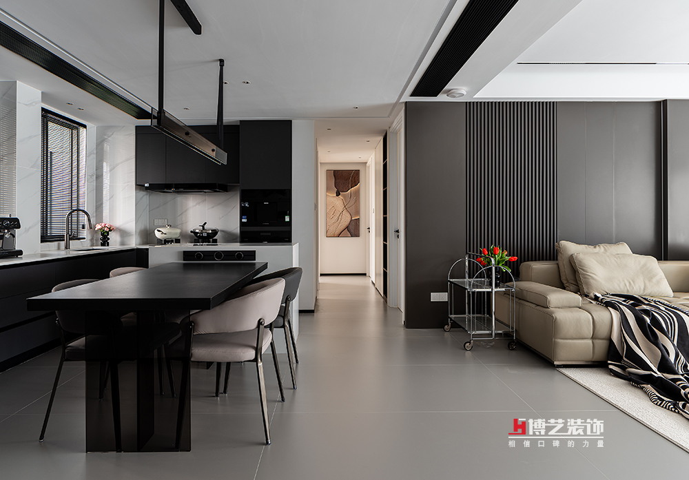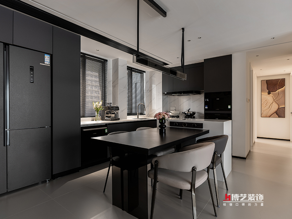 在現(xiàn)代都市的繁忙節(jié)奏中,廚房不再僅僅是烹飪的場(chǎng)所,更是家人情感交流與生活品味展現(xiàn)的空間。餐廚一體式的設(shè)計(jì),讓整個(gè)空間在視覺上更顯開闊通透。