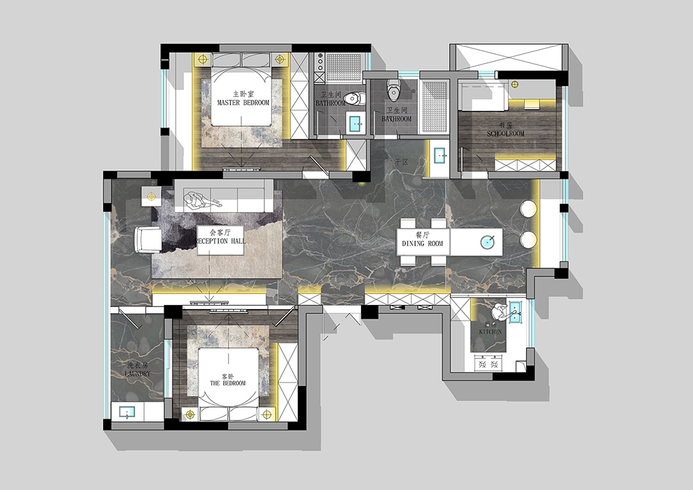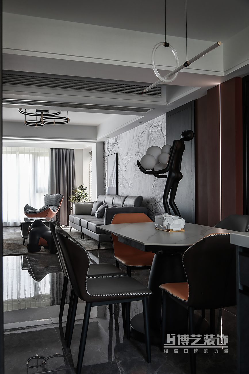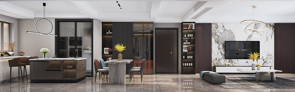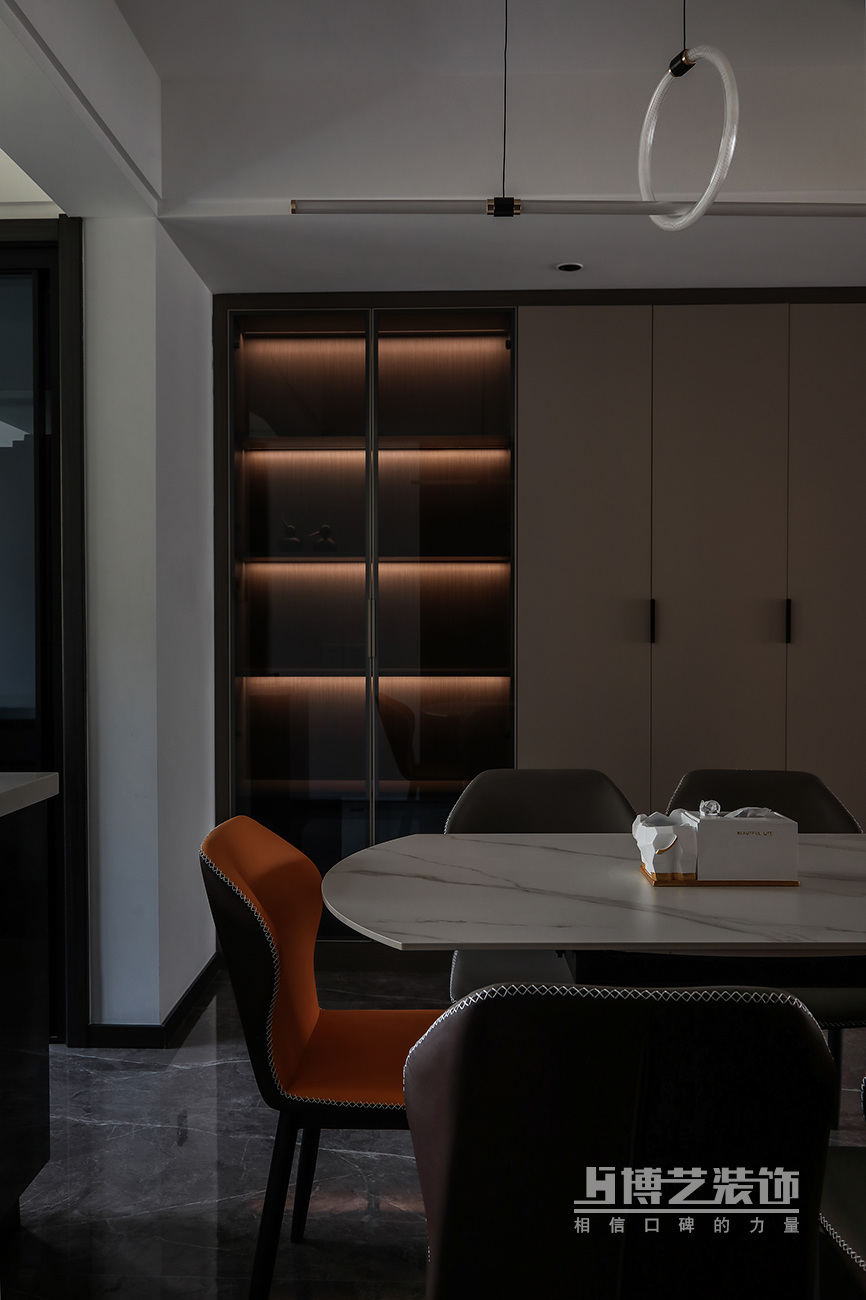餐廳是家中不需要刻意營造就足夠溫情的空間,美食便是我們情感溝通交流最好的媒介,在暗色系的氛圍渲染中,清疏佳肴散發(fā)的人間煙火氣顯得別樣生動(dòng)溫馨。