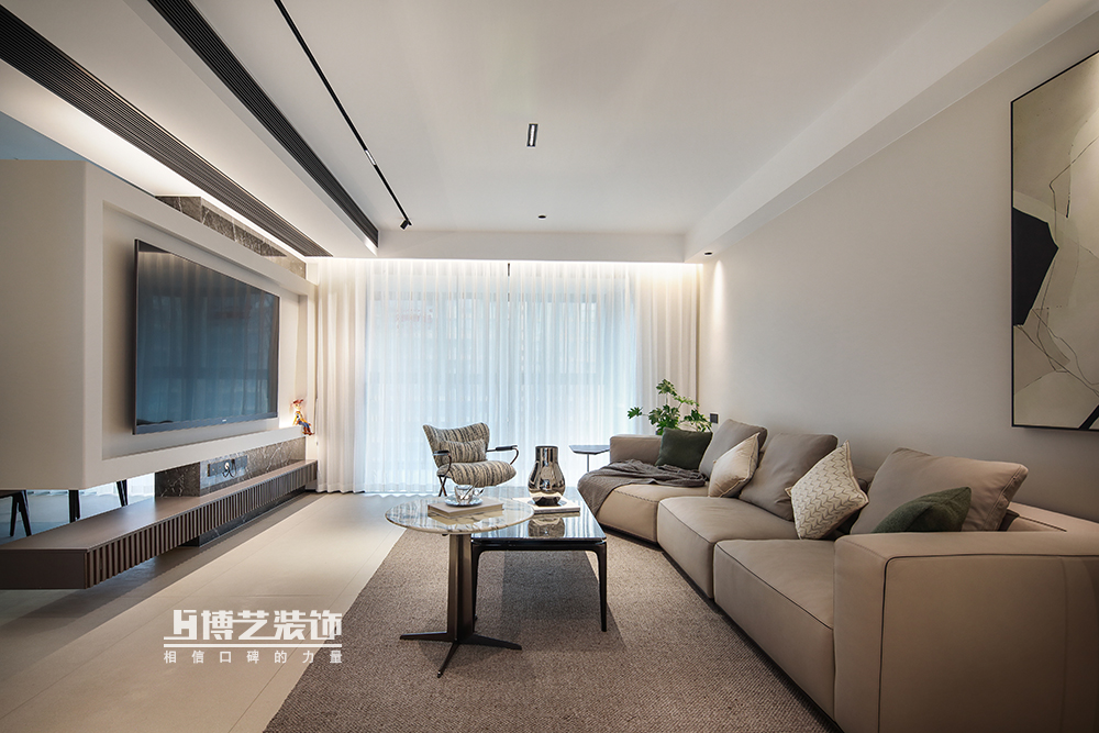 【博藝裝飾】贊園?128m2?|?美呆了,懸浮背景墻太讓人怦然心動!