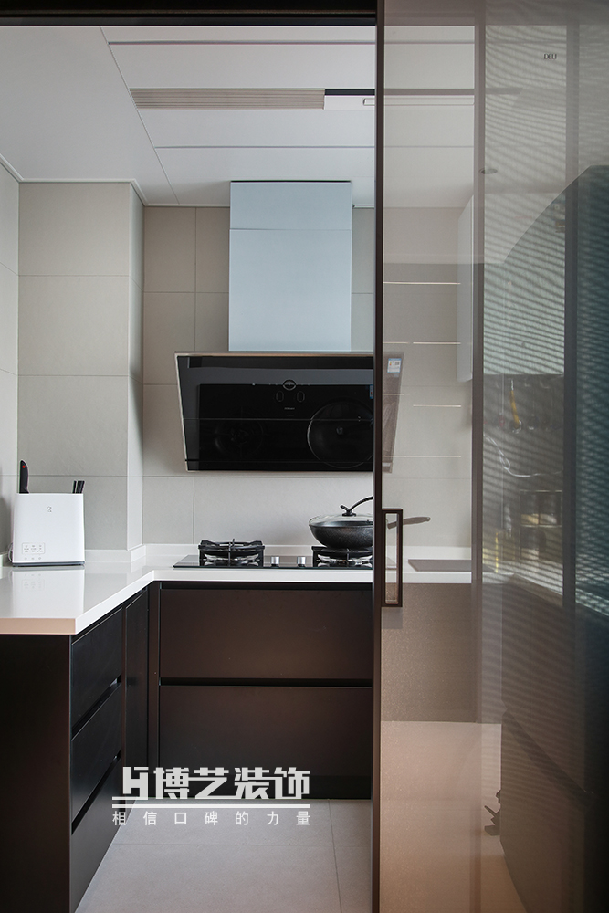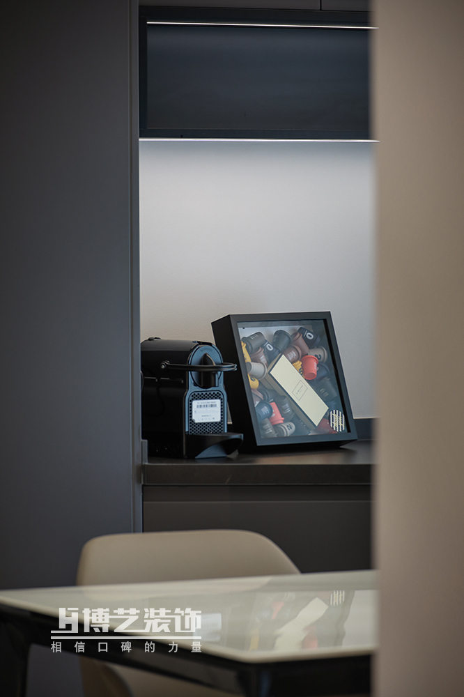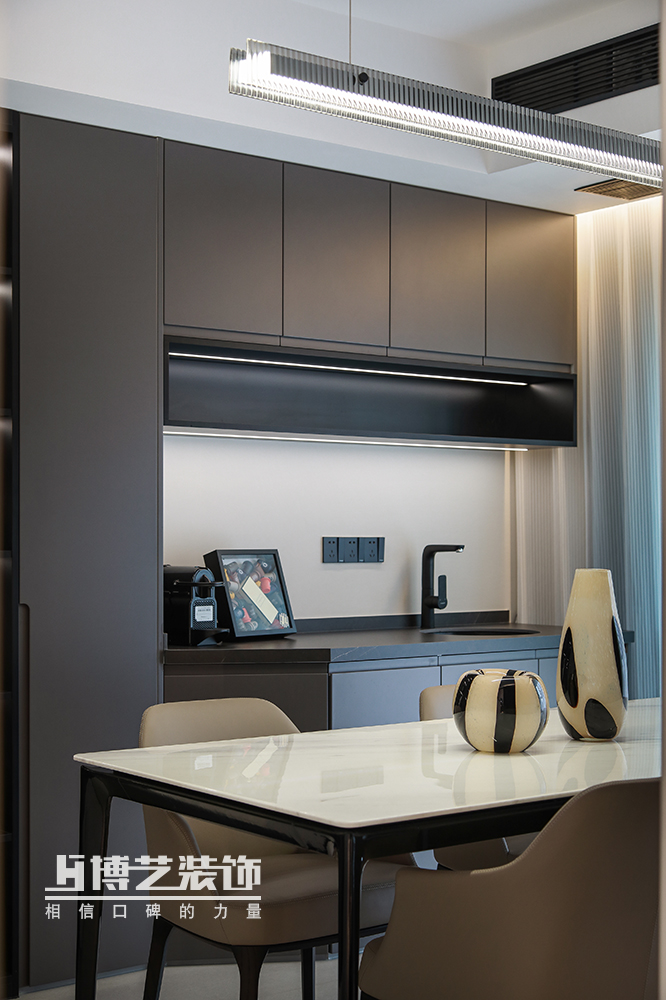 西廚緊挨著廚房,半開放的設(shè)計保證油煙不外散。小吧臺的設(shè)計兼具收納功能,同時方便日常簡餐,閑時亦可與家人朋友小資一刻,悠悠半日閑。
