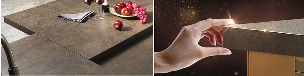 堅硬的臺面始終是一個潛在的安全隱患。2005年,歐派從孩子的角度出發(fā),推出弧形防撞臺面,